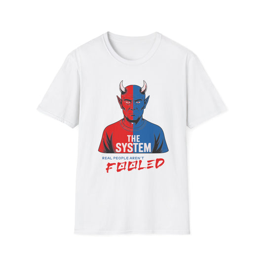 Unisex T-Shirt: The System - Real People Aren't Fooled DesignVendor:PrintifyRegular price From $11.99 USDRegular priceUnit price / per