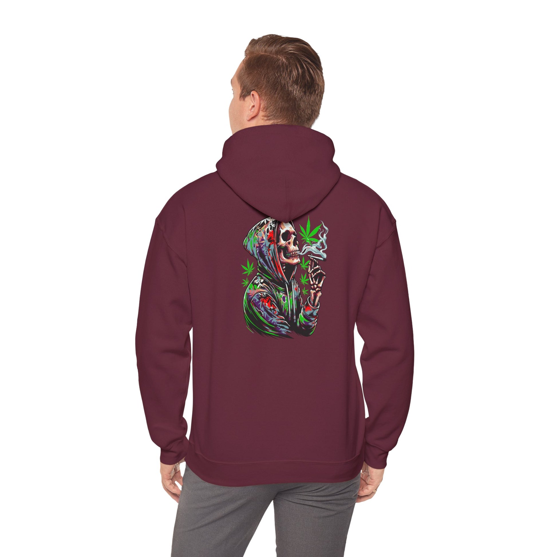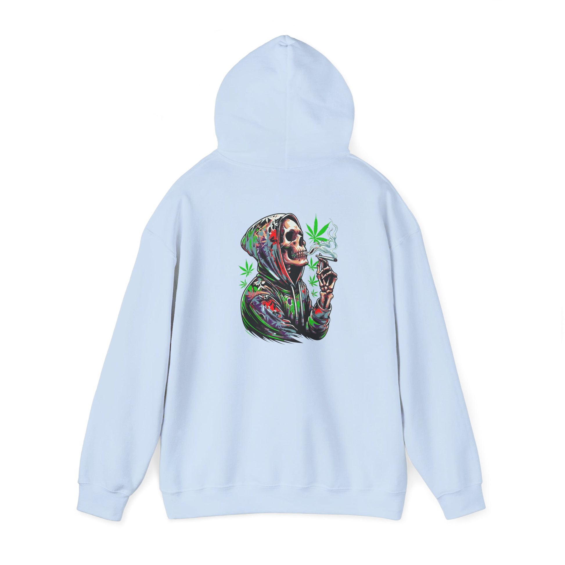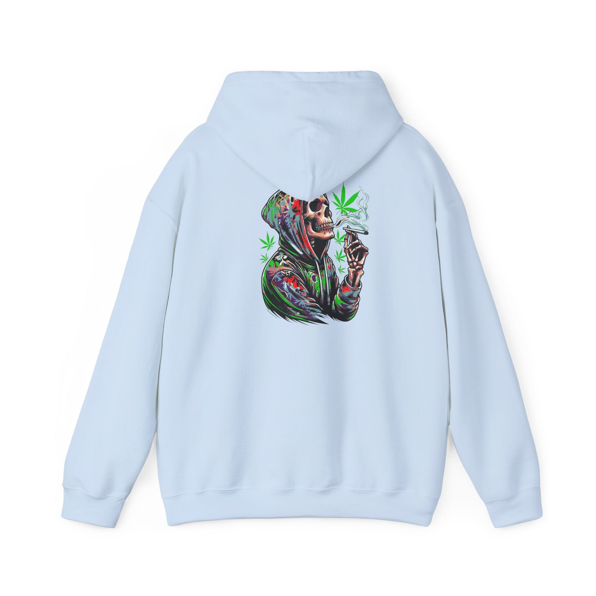 This Deep Thoughts Stoner Hoodie features a skeleton smoking a joint deep in thought, giving off a chill and laid-back vibe. Perfect for those who enjoy a relaxed lifestyle and appreciate a touch of humor in their wardrobe. Ideal for gifting on 4/20 or to anyone who enjoys cannabis culture.