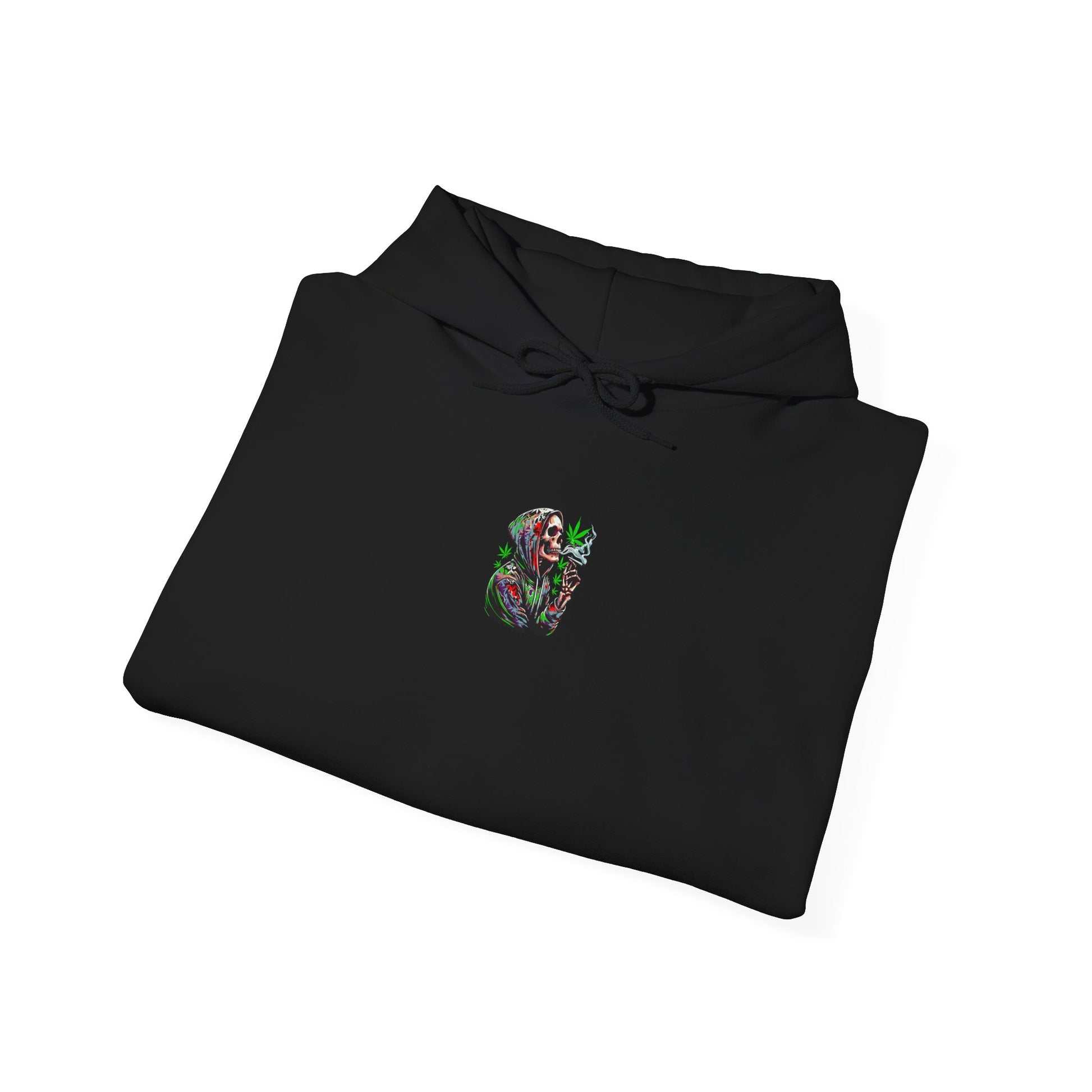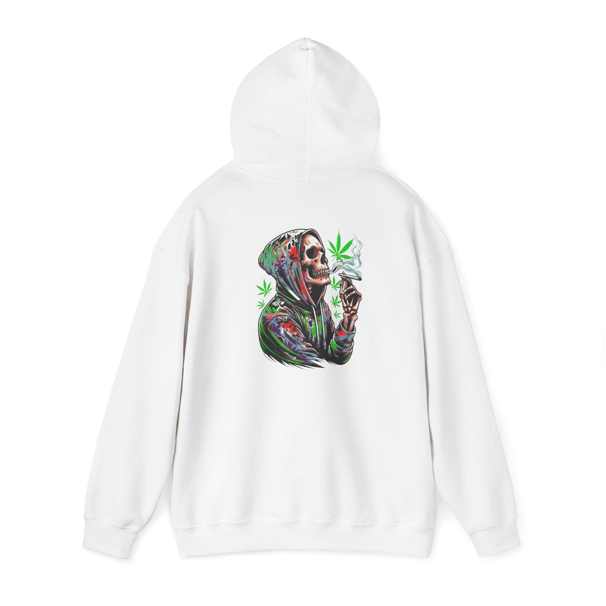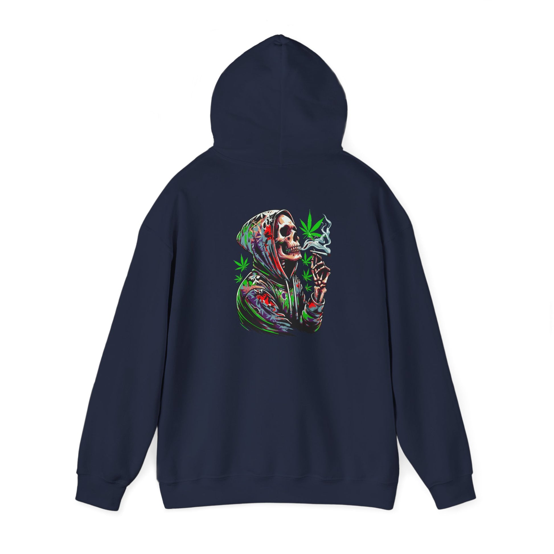 This Deep Thoughts Stoner Hoodie features a skeleton smoking a joint deep in thought, giving off a chill and laid-back vibe. Perfect for those who enjoy a relaxed lifestyle and appreciate a touch of humor in their wardrobe. Ideal for gifting on 4/20 or to anyone who enjoys cannabis culture.